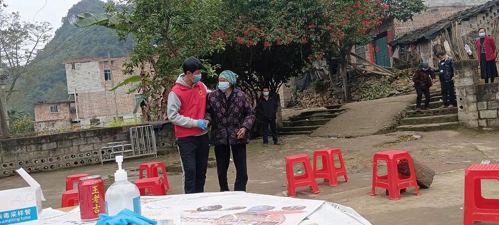 当大家还沉浸在春节的喜悦氛围之中时,我的家乡百色市受到了疫情的折磨。作为一名共青团员,我深知自己应当为家乡贡献一份力量,当我得知急需志愿者后,我立即加入了六隆镇央光村疫情防控志愿者团队。我的工作主要是与其他志愿者轮班值守本村出入口、走访到户帮助本村录入桂核酸居民端核酸码、配合医护人员做好本村的核酸检测采样工作