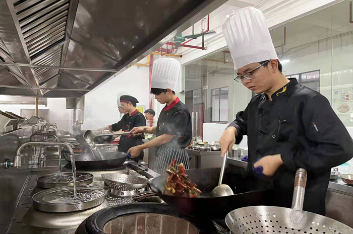 2017级中式烹饪专业高级工班的学生经过五年历练,通过以中式烹调工艺为核心,向中式面点、果蔬雕刻与冷拼发展的一专多能的专业训练,综合职业能力得到有效提高。此次毕业盛宴暨综合实训项目从饮食成本核算、菜单设计、食材采购到菜肴烹饪整个实训过程,由学生亲自设计与操作。学生通过亲自实践与体验,把所学的餐饮理论知识与后厨实践工作有效结合,明确后厨工作的流程,提高学生的职业体验感和获得感。