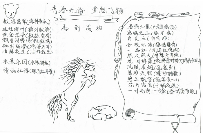 学生自制“青春无悔,梦想飞扬”主题菜单