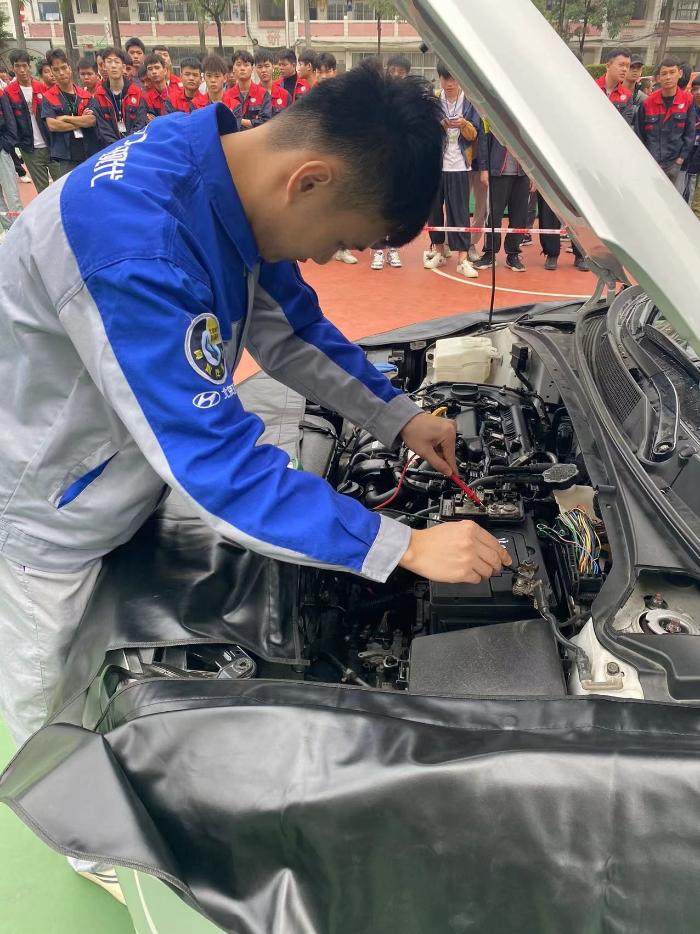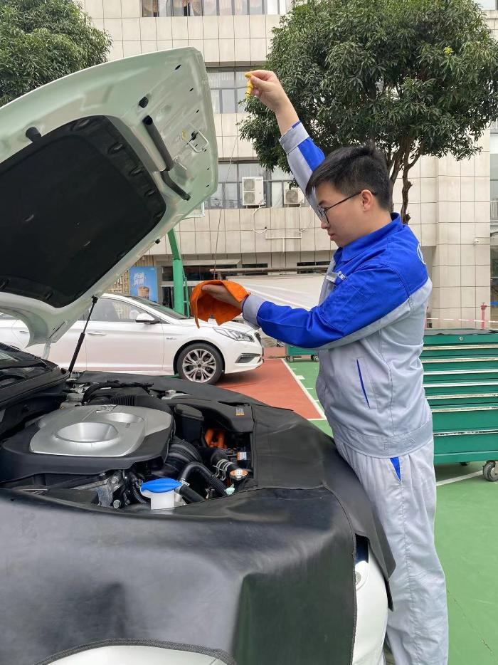 本次活动主要有“学生维修技能展示”、“北京现代热销车型营销推广展示”和“车辆保养检查技能展示”三个环节。活动现场,21级北京现代机修班同学以规范、整齐的维护作业展现出饱满的“精气神”,21级北京现代营销班同学现场活学活用销售技巧展现出扎实的基本功,在企业心中留下了良好的印象。在车辆检查保养技能展示环节中,企业维修技师演示了实际维修过程,并强调维修中的注意事项,让学院师生体验实际维修作业中的精细化。