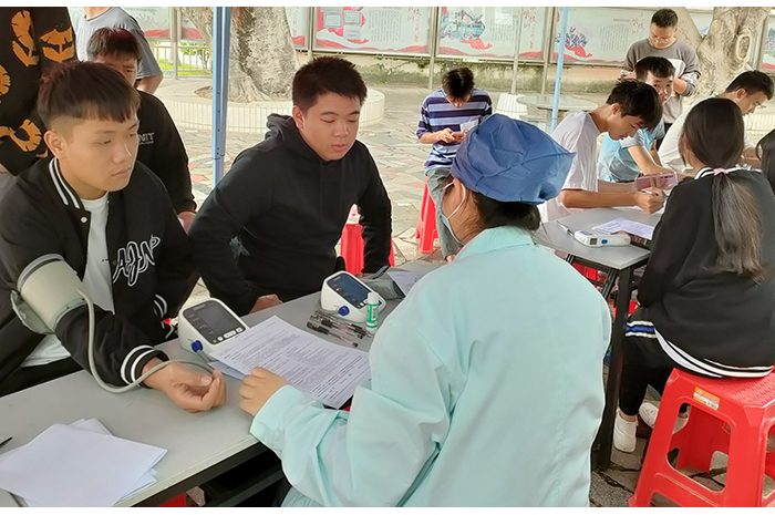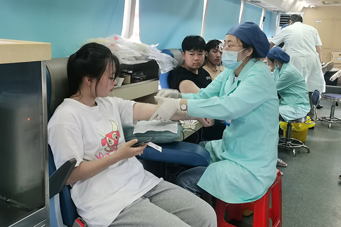 我院师生在南宁市中心血站工作人员的指引下,依次登记填表、化验血型、采集血样,整个过程井然有序。