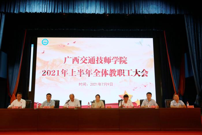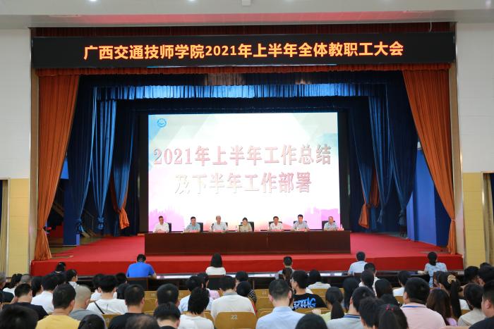 为全面总结学院2021年上半年工作,部署落实近段时期学院中心各项工作任务,推进学院高质量发展,7月9日,广西交通技师学院2021上半年全体教职工大会在学院礼堂召开。学院领导班子出席,全院400多名教职工参加会议。会议由院长刘芳代表行政班子向大会作上半年工作总结报告,学院副院长关菲明主持会议。