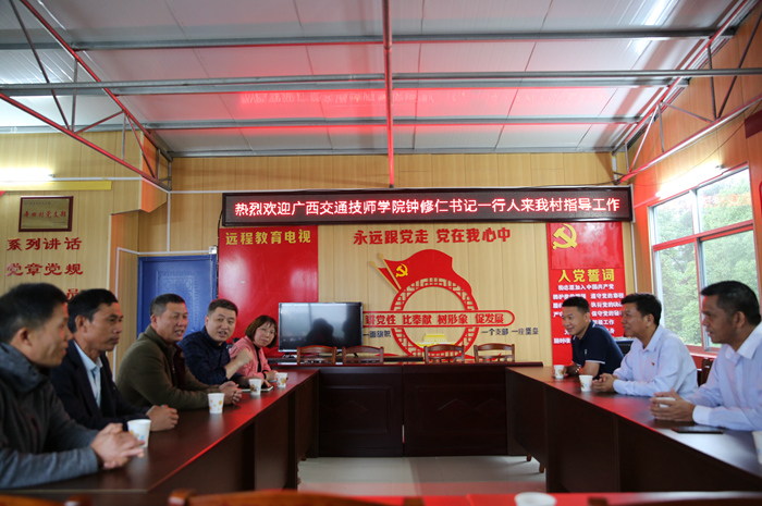 5月21日下午,广西交通技师学院学院党委书记钟修仁率队赴全州县龙水镇辛田村看望慰问学院驻村第一书记王尧飞,并在辛田村村党群服务中心三楼会议室召开座谈会。学院副院长王钦、学院副处级干部陆天云、人事科科长莫卫宁、辛田村村委委员等参加座谈会。