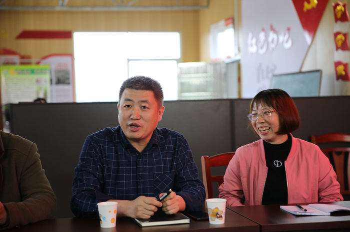 图2 辛田村村支书吴政芳(右一)向慰问团介绍辛田村情况