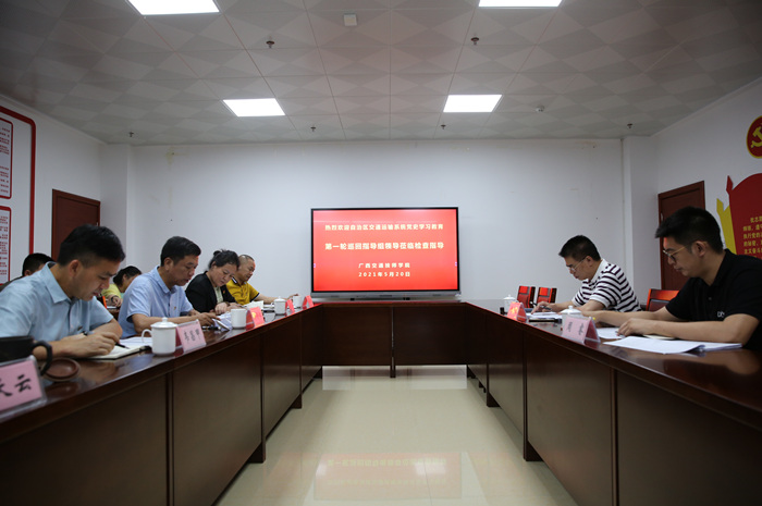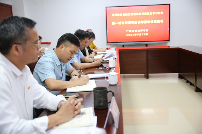 根据自治区党委党史学习教育巡回指导工作方案安排,自治区交通运输系统党史学习教育第一轮巡回指导组于5月20日下午,莅临学院开展检查指导工作。指导组一行首先在学院综合楼1524党员活动室召开了见面会,指导组组长、二级巡视员黄荣钰,指导组组员周睿,学院领导班子、学院各党支部书记参加会议,学院党委书记钟修仁代表广西交通技师学院向指导组汇报了党史学习教育开展情况。