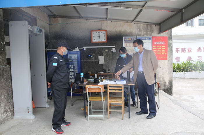 图(一):党委书记钟修仁同志检查长堽校区保安门岗出入登记情况