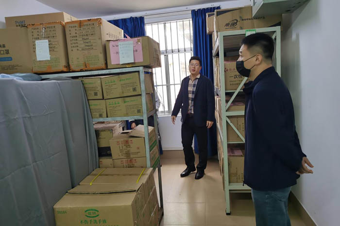 图(三):王钦副院长检查组在查看疫情防控物资储备情况