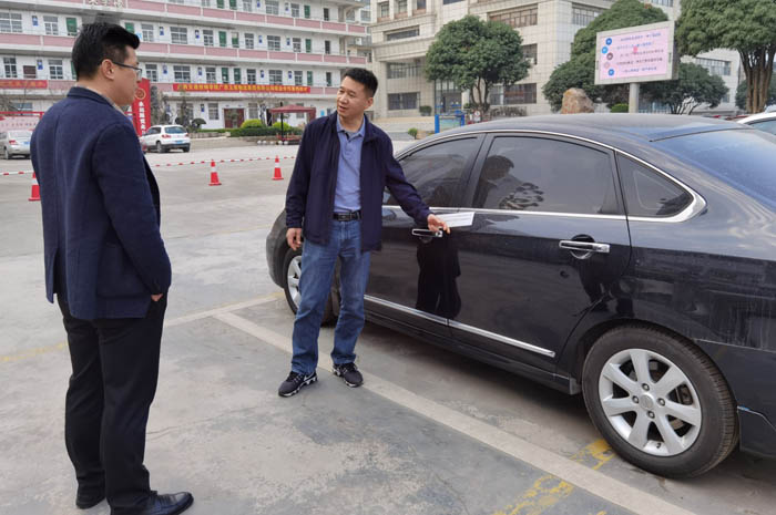 图(四):王钦副院长检查组在检查学院公务车封条情况