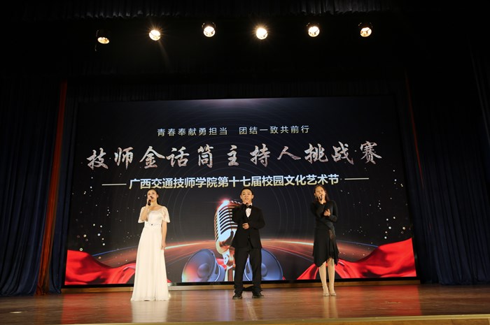 2020年12月14日,我院举办了“青春奉献勇担当 团结一致共前行”第十七届校园文化艺术节技师“金话筒”主持人挑战赛。来自三个校区十二名优秀的学生主持人,通过层层比赛,最终走到决赛的舞台。