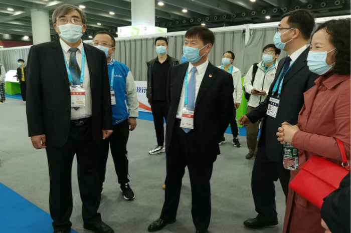 交通运输部副部长刘小明一行莅临学院汽车喷漆选手陈文笔比赛现场观摩