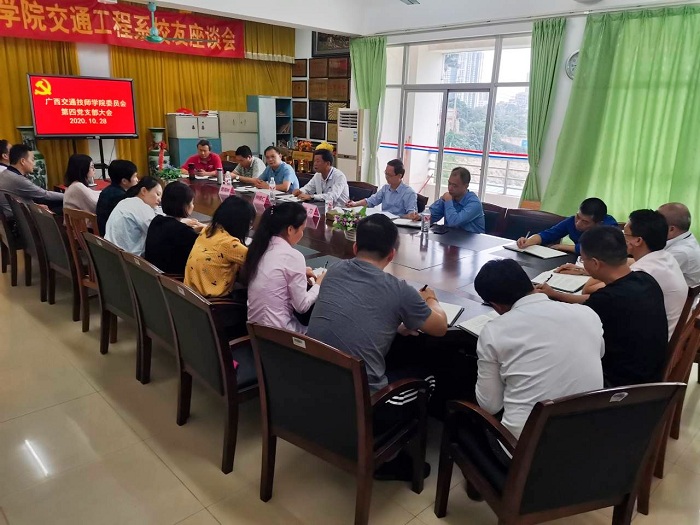 2020年10月28日,广西交通技师学院第四党支部在长堽校区办公楼3楼召开党员大会,组织开展“依托广西交通强国建设,探讨交通行业人才培养模式”主题党日活动。会议由第四党支部书记樊海林主持,自治区交通运输厅党组成员、铁路建设办专职副主任龙力、厅机关党委二级调研员李勇斌同志参加本次会议。