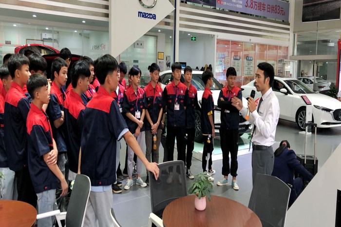 在参观过程中,企业负责人向学生介绍了各个岗位相关的工作情况,如:汽车机械维修、汽车喷漆维修、新车销售、汽车改装美容、汽车服务接待等。学院带队教师也与企业负责人就以后学生的就业前景以及如何提升学生专业素养展开深切交谈,并讨论了符合中职学生教育发展的相关措施。