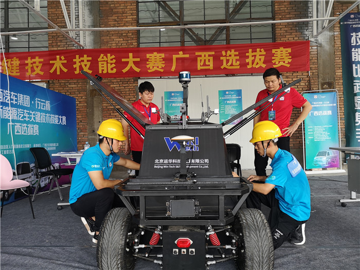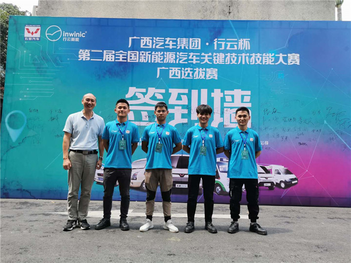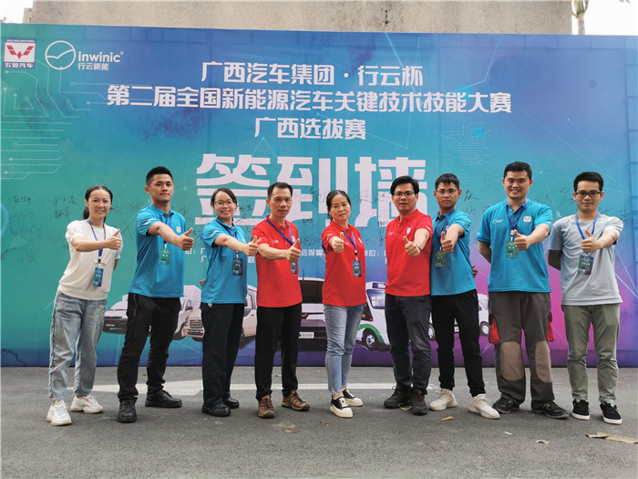 9月15日-17日,广西人力资源和社会保障厅、广西机械工业联合会共同举办了“2020年第二届全国新能源汽车关键技术技能大赛广西选拔赛”,汽车工程系潘利丹(教师)、罗万庆(教师)、冯学银(教师)、张兰聪(学生)、赖德杰(学生)、吕钊良(学生)、陈艺文(学生),在汽车系主任韦军新、汽车系副主任肖华炜的指导下,组队代表广西交通技师学院参加比赛。来自全广西的42支参赛队齐聚柳州,152名选手同场竞技。
