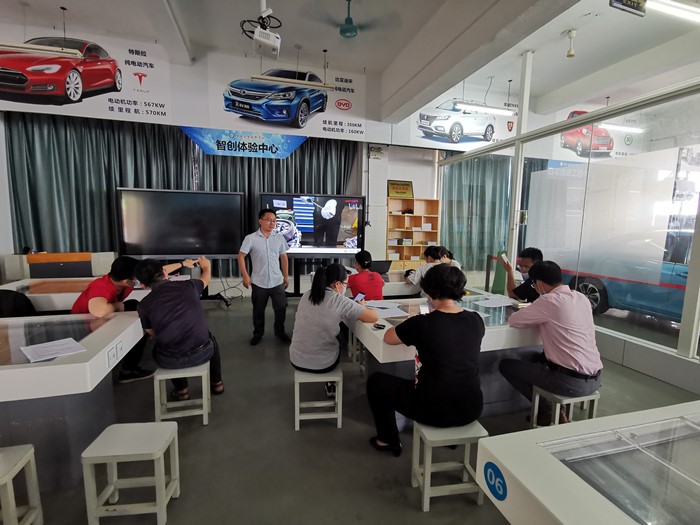 本次新能源汽车培训以普及新能源汽车技术大赛维修项目技术要求为重点,突出教师们的自主学习能力,专研精神,强化部分教师的专业水平,为组队参加“2020年新能源汽车技术技能大赛”选拔优秀人才。培训以“线上自学+分组实践”的形式,有计划、有步骤地开展学习交流。授课教师将相应的教学资源,视频,评分标准上传至超星学习通网络学习平台,提出学习要求,培训教师线上自学相关竞赛文件内容;分组实践环节,35名教师分成三个小组,以小班教学形式开展学习实践活动,围绕竞赛文件技术要求,评分标准展开激烈的讨论,并将讨论结果用于实践操作检验,由此完成任务学习。