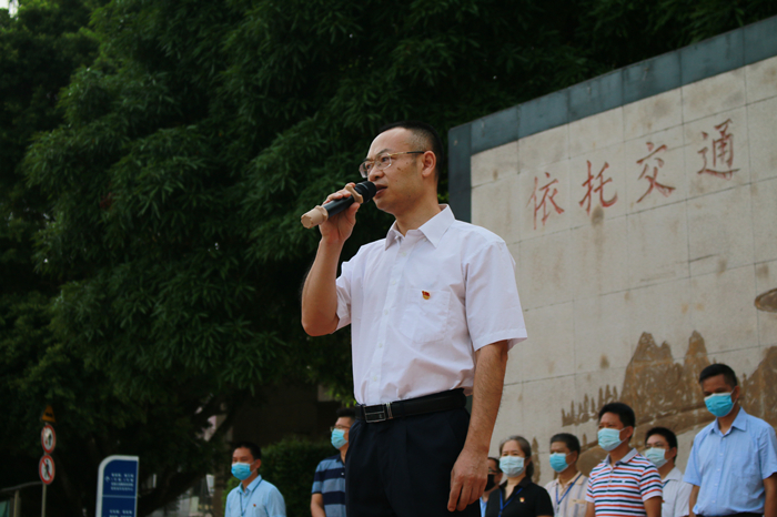 礼毕,古雅明书记作爱国主义教育主题讲话。他表示,新冠肺炎疫情在全球呈现蔓延之势时,越来越多的国家开始关注并学习中国的抗疫模式,关注中国的政治制度优势。联合国表示“中国做出了强大且令人印象深刻的反应”,国际上高度称赞中国的防控举措,世界卫生组织作出“中国展现的领导力和政治意愿值得其他国家学习”的积极评价。世卫组织总干事高级顾问甚至对记者说:“如果我感染了,我希望在中国治疗”。事实证明,小智治事,大智治制,中国特色社会主义的制度优势始终是我们党和人民经受住各种风浪考验的信心和底气所在。