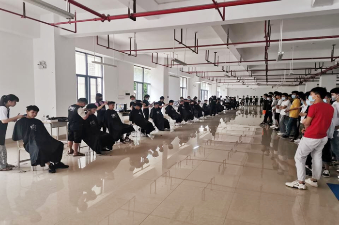 为切实保障疫情大环境下学生生活质量,营造和谐的校园文化氛围。6月3日下午,我院邀请南宁百汇美容美发彩妆学校42名师生入校为我院在校学生免费剪发,改善全封闭管理环境下学生生活质量。