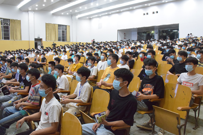 参会学生保持安全距离有序落座