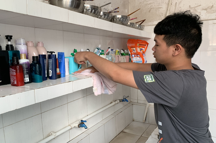 学生在宿舍内打扫卫生