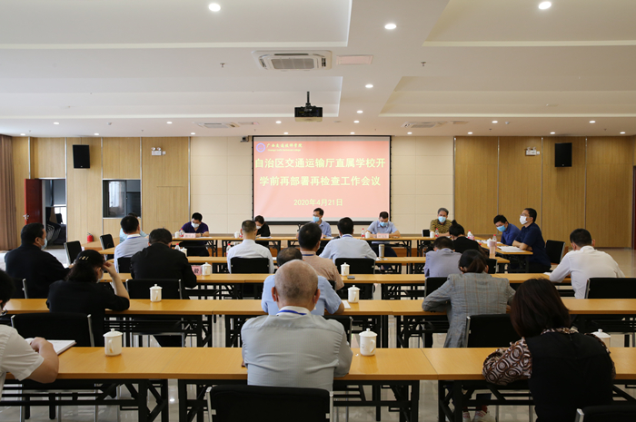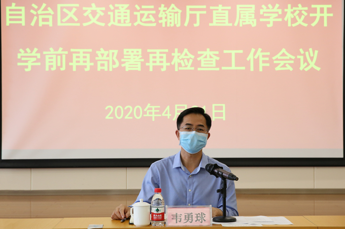 4月21日上午,自治区交通运输厅党组成员、副厅长韦勇球一行八人对我院开学准备工作进行再部署再检查。我院院长钟修仁,党委书记古雅明,副院长刘芳、王钦及相关部门责任人陪同检查。