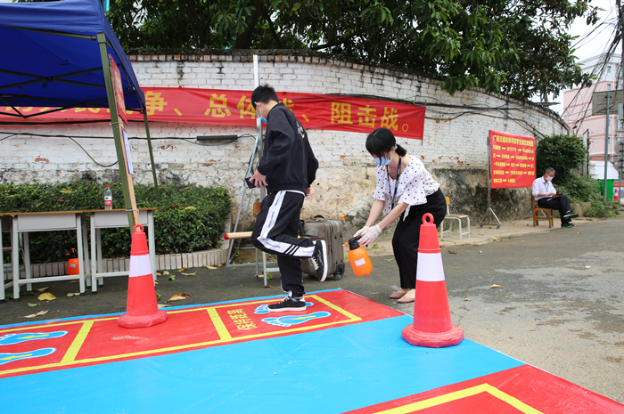 对返校学生进行全面消毒并扫码进入校园