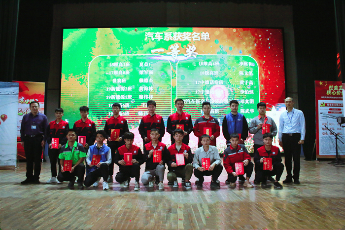 据统计,本届技能节共开设32项比赛项目,从初赛开始共有900多名同学参与了本次技能节的训练和比赛,共有521人次获奖。其中一等奖56名,二等奖108名,三等奖168名,优秀奖189人。在世界技能大赛广西区选拔赛中,我院学子共参加9个比赛项目,荣获车身修理项目、汽车技术项目、重型车辆维修项目、汽车喷漆4个项目榜首,在其余5个项目中也取得了名次不等的好成绩。为了鼓励我院学子继续发扬苦练技能的优良传统,我院领导班子在颁奖典礼上给在世界技能大赛和第十二届技能节上获奖的选手颁发荣誉证书。