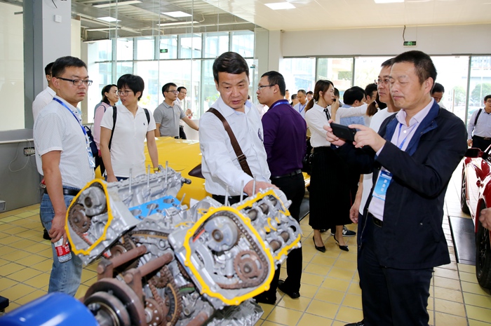 随后,在学院领导的陪同下,嘉宾们饶有兴致地参观了学院动车实训基地、机电工程实训基地、大师工作室、汽车4S实训基地、中德诺浩培训基地、世赛喷涂实训中心、新能源汽车实训中心、保时捷汽车喷涂实训中心、烹饪专业实训基地以及幼儿教育实训室等教学实训场所。
