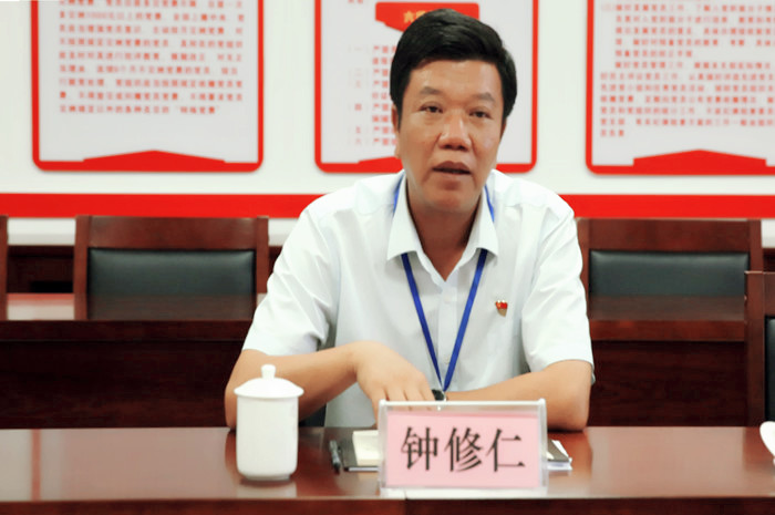 钟修仁院长在会上与来访人员交流校企合作具体事宜