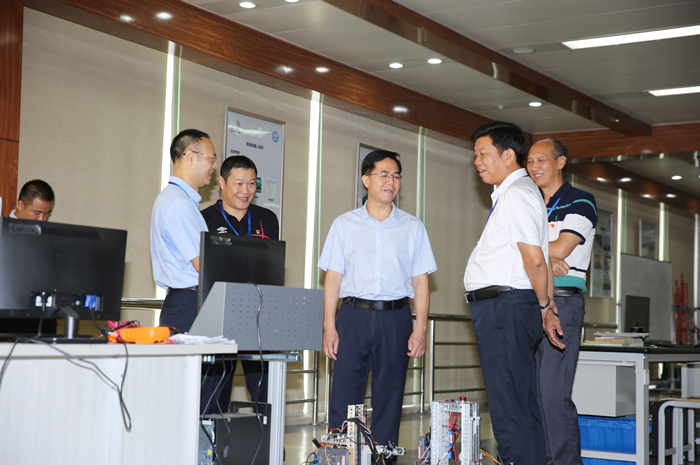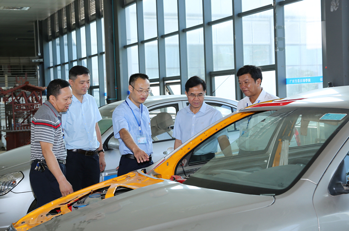 我院领导陪同自治区交通运输厅韦勇球副厅长(中)参观考察机电工程实训基地