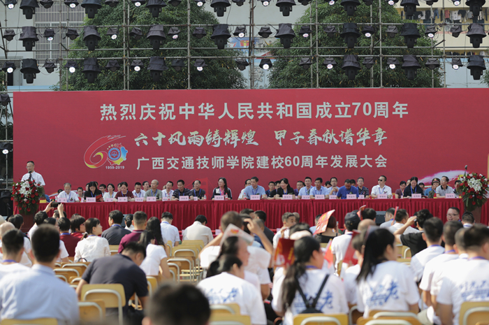 甲子轮回,忆往昔峥嵘岁月风雨同舟,六十华诞,看今朝日新月异百舸争流。广西交通技师学院已走过了60年的光辉历程,2019年9月28日上午,广西交通技师学院在邕武校区隆重举行建校60周年改革发展成果展系列活动。系列活动包括教学成果展、学生技能成果展、校企合作座谈会、校友座谈会、文艺汇演。