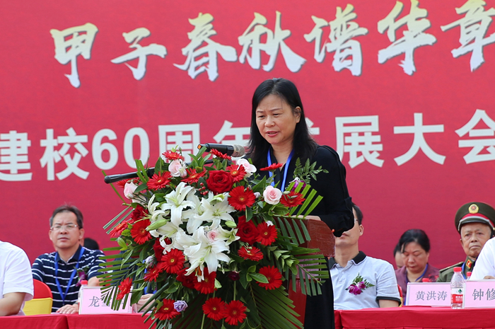 广西钦州市吉祥物流有限公司、广西钦州市万通汽车销售有限公司董事长,钦州市百色商会会长,钦州市道路运输协会监事长,我院96级毕业生、杰出校友李恩情代表我院广大校友发言。他代表全体校友向母校表示最衷心、最热烈的祝贺,向各位老师表示亲切的问候和崇高的敬意。他祝愿母校在60华诞之际,宏图更展,再谱华章,未来更加灿烂辉煌!