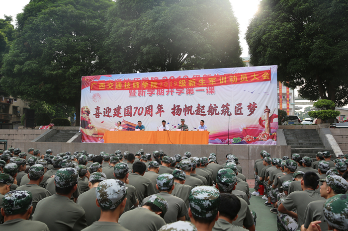 我院2019级新生军训为期6天,近3600名参训同学将以本次军训为契机,刻苦训练、磨炼意志,以饱满昂扬的精神风貌完成军训任务,献礼母校60华诞。