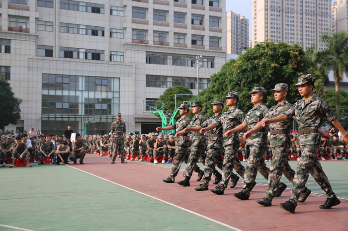 大会在嘹亮的国歌声中拉开序幕。承训教官为参会师生表演了列队、军体拳演示等军训项目,教官们激情饱满的斗志、威武矫健的身姿赢得全场阵阵掌声。广西锐善堂训练基地主任向参训同学提出三点期望:一是端正军训指导思想,克服怕苦、怕累情绪,真正把这次军训当做人生阅历中的必修课;二是服从命令听指挥,坚决做到令行禁止;三是要坚决执行军训的有关规定,严格遵守训练纪律,认真做好每一个动作、喊响每一个口号。
