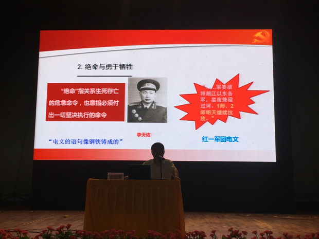 赵晓刚博士通过湘江战役讲述了红军长征的背景、经过及意义,带领我院全体党员职工重温历史,铭记历史,弘扬和传承红军精神和共产党人的历史担当,重述中国共产党人为中国人民谋幸福、为中华民族谋复兴的初心和使命。