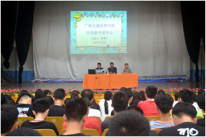 7月4日,学院在长堽校区举办第二场鼓励在校生续高级技工、预备技师宣讲会,院长助理谢毅松主持宣讲会,学生工作科科长梁勇、交通工程系副主任覃甫陪同出席。