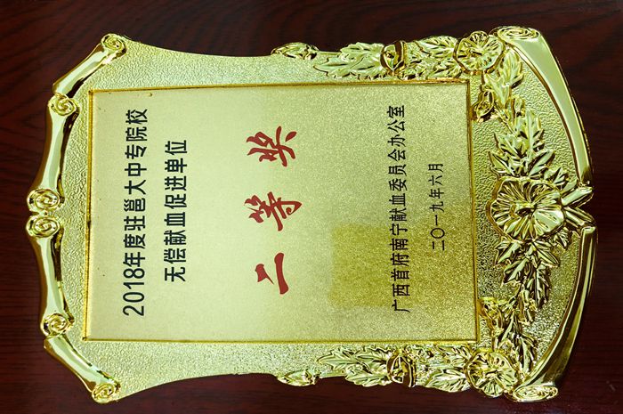 我院荣获“2018年度驻邕大中专院校 无偿献血促进单位”二等奖