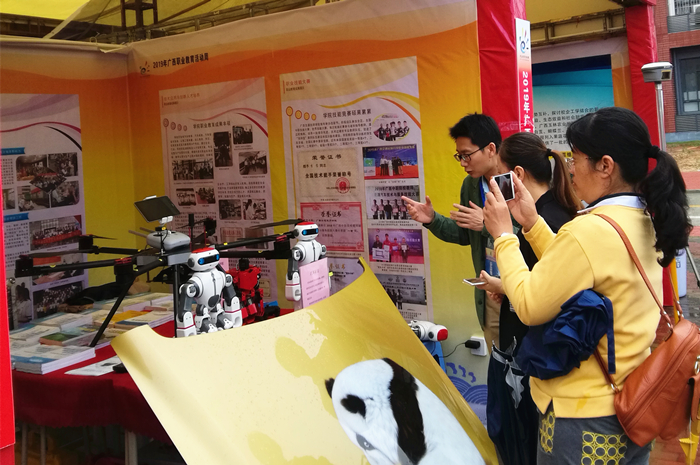 此次活动共设8个展示区150多个主题展位,我院派出了汽车工程系、交通工程系、机电工程系、商务服务系参加教育成果展示区和特色美食小吃展示区,参展物品包括汽车喷绘、公路工程设备,无人机,智能机器人及我院正式出版12本专业教材。我院专业教师耐心地回答参观人员的询问,详细介绍我院的专业设置和人才培养模式。