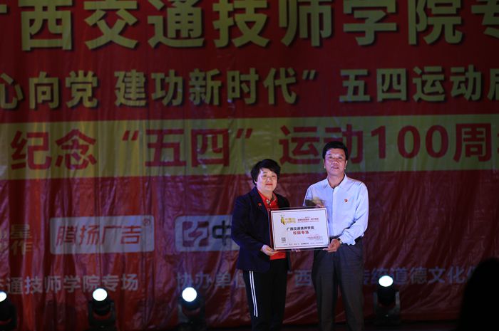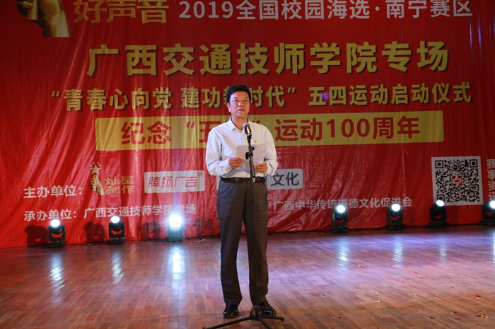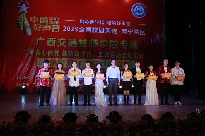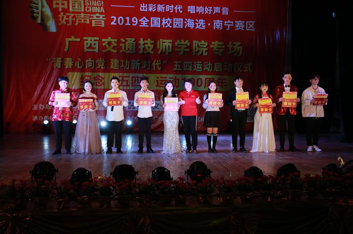 为纪念五四运动100周年,更好地引领广大青年学生继承和发扬“五四精神”,5月9日晚,2019《中国好声音》全国校园海选•南宁赛区广西交通技师学院专场决赛——“青春心向党 建功新时代”五四运动启动仪式在我院邕武校区礼堂隆重举行。