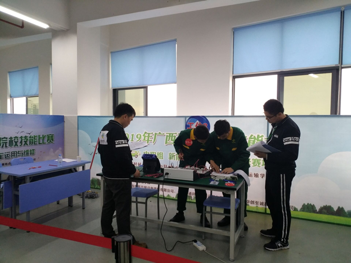 新能源汽车检测与维修项目于3月24日-25日在广西交通运输学校举行,参加新能源汽车检测与维修赛项的共有来自全区的44支代表队,我院汽车工程系学生薛华杰、杨周龙参加了本次比赛。
