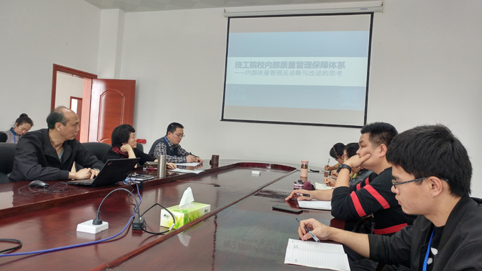会上,关菲明副院长总结了我院在往年内部质量管理中取得的经验和不足,剖析了“55821”内部质量保证体系的架构组成,分析了学院质量保证体系中的“两链”、“双引擎”、“一平台”的含义,并重点介绍了由“学院—专业—课程—教师—学生”五个层面构成的“8字螺旋”诊改运行机制,强调了信息化平台建设、大数据管理在诊改工作中的重要意义。