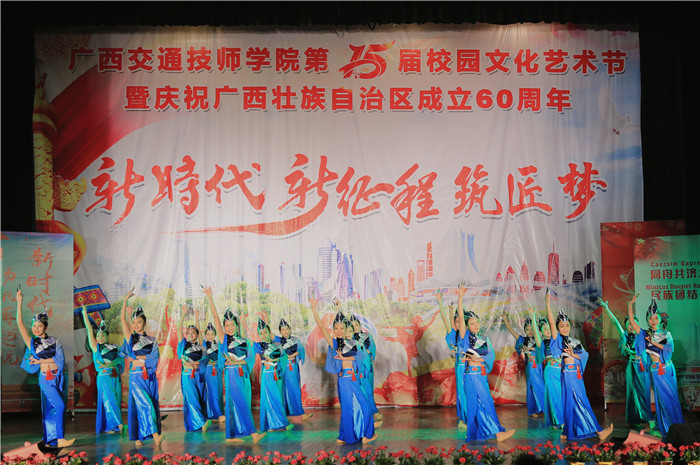 12月28日晚,我院2019年元旦综合文艺晚会暨“新时代,新征程,筑匠梦”第十五届校园文化艺术节闭幕式在礼堂隆重举行。自治区交通运输厅科教处、自治区技工教育研究室、自治区职业技能鉴定中心、自治区道路运输管理局、南宁市兴宁区社科联、南宁市秀和社区等领导以及我院全体教职员工到场观看了演出。