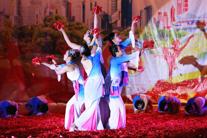 晚会在铿锵有力的舞蹈《青春筑路人》中拉开帷幕。悠扬的音乐,曼妙的舞姿,舞蹈《梦回浏阳》展现了学院行政部门教师的风采。小品《乌龟惹的祸》幽默不断,让观众们笑声连连。情景剧《光阴似箭》带着观众们追忆光阴,珍惜当下。舞蹈《三月木棉红绯绯》展现了壮族姑娘在木棉花开季节里嬉戏玩花,优美的舞姿将晚会推向了高潮。