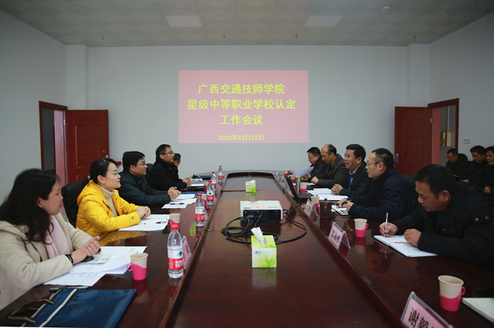 12月12日下午,自治区中等职业学校星级认定专家组一行5人来到广西交通技师学院,对我院星级学校建设工作情况进行评估。我院领导班子、各相关部门负责人参加了会议。