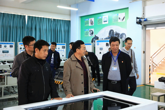 来宾们先后参观了我院智能家居实训地、大师工作室、新能源汽车实训场所等,对我院良好的教学环境和教学氛围给予了高度评价。