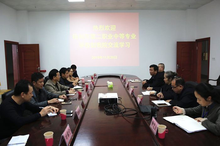 11月20日下午,梧州市第二职业中等专业学校校长陈森英等一行9人到我院参观交流。我院院长钟修仁率相关部门负责人热情接待来宾并进行了深入交流。