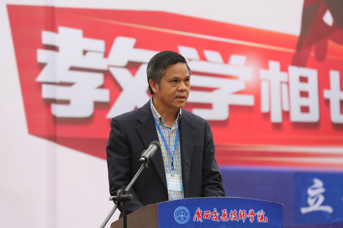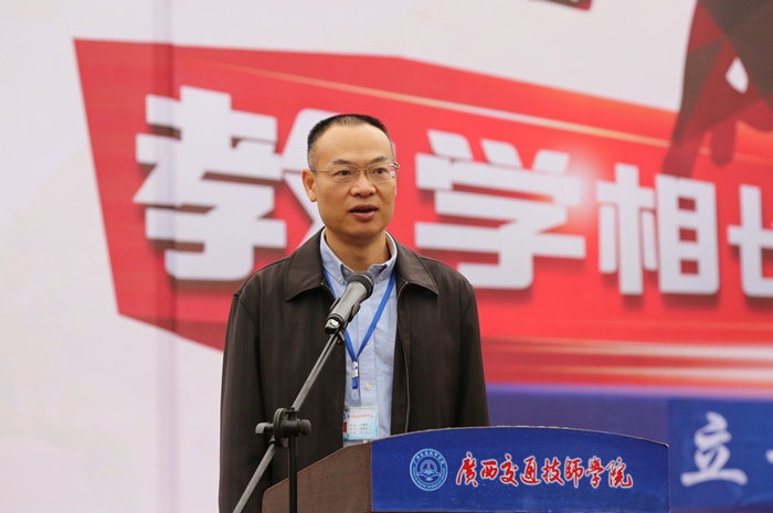 陆天云副院长在开幕式上致词。他首先对筹备此次运动会的工作人员、参加大会的运动员和裁判员表示衷心感谢。陆天云副院长表示,近一年以来,我院取得了令人瞩目的重大成就和荣誉:2017年学院经自治区区直工委推荐,经过层层选拔脱颖而出,被中央精神文明建设指导委员会授予首届“全国文明校园”称号,是全国唯一获得此项荣誉的的技工院校;2018年8月,学院因良好的办学条件,优异的竞技成绩,被国家人力资源和社会保障部确定为“第45届世界技能大赛汽车喷漆项目中国集训基地”,实现了广西世界技能大赛中国集训基地零的突破。他希望全体师生员工在紧张的工作、学习之余,积极参加体育锻炼,增强体魄,让自觉参加体育锻炼成为大家的良好习惯,掀起我院师生员工健身的新高潮,开创我院体育工作的新局面。
