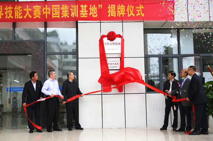 与会领导为学院“全国文明校园”暨“世界技能大赛中国集训基地”揭牌