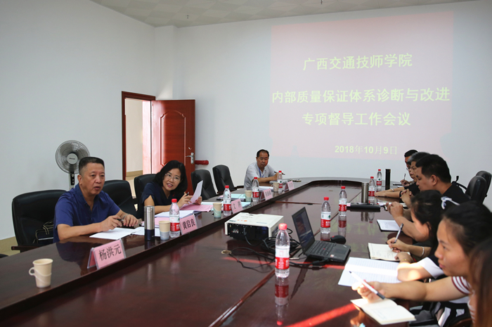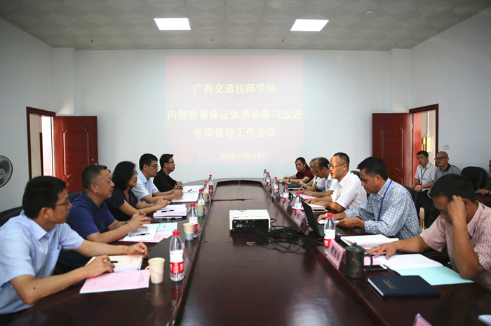 为深入推进全区职业院校内部质量保证体系诊断与改进(简称“诊改”)工作,建立健全内部质量保证制度体系,10月9日上午,自治区职业院校内部质量保证体系诊断与改进专项督导组一行5人到我院开展督导工作。学院党委书记古雅明,副院长陆天云、关菲明,院长助理樊海林以及相关部门中层正职领导等参加了诊改督导工作会议。
