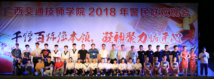9月9日晚,我院在灯光球场举行2018年警民联欢晚会。学院院长钟修仁、广西国防教育培训基地指导员张勇、人事科科长李毅、学生工作科科长梁勇、交通工程系副主任覃甫,参加此次军训任务的全体教官和新生们观看了晚会。