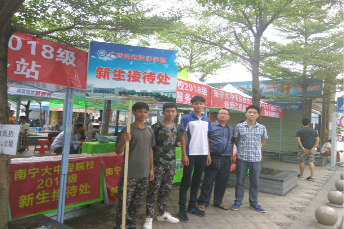 为给来报到的新生提供一个良好的交通环境,学院在南宁市7个车站分别设立了迎新接待点,负责接送学生到校报到,迎新车辆一进入校园,由老生组成的志愿者为新生和家长提供“一对一”的全程陪同服务,带领新生顺利、快捷地完成入学报到的各项手续,并介绍学院相关情况,使新生能够快速融入新的大家庭。