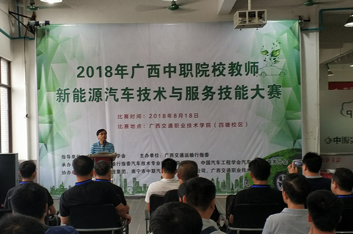 2018年8月18日,2018年广西中职院校教师新能源汽车技术与服务技能大赛在广西交通职业技术学院举办,本次大赛由中国汽车工程学会作为指导单位,广西交通运输行指委主办,广西交通运输行指委汽车技术专业教学指导委员会、中国汽车工程学会汽车应用与服务分会承办,浙江吉利控股集团、南宁市中联汽保设备销售有限公司、广西交通职业技术学院协办。南宁市中联汽保设备销售有限公司为本次大赛提供了技术支持、设备支持及参赛服装等。